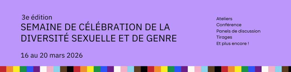 Le comité d’organisateur de la Semaine de célébration de la diversité sexuelle et de genre, en collaboration avec le Vice-rectorat à la recherche, à la création et à la diffusion, a le plaisir d’inviter les personnes étudiantes inscrites dans un programme de maîtrise ou de doctorat à soumettre leurs travaux pour une présentation par affiche scientifique (poster). Pour cette troisième édition, l’appel à projets est spécifiquement consacré aux recherches portant sur la santé, en lien avec la diversité sexuelle et de genre.